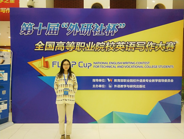 暑假的學習讓她有了自信。2019年,長江職業學院選拔學生參加全國外語教學與研究出版社舉辦的英語寫作比賽(簡稱外研社杯·全國大學生英語挑戰賽)高職賽道。半路出家學習英語,而且又沒有讀高中,憑借自學英語的實力,黃昕婷在學校選拔賽中脫穎而出。